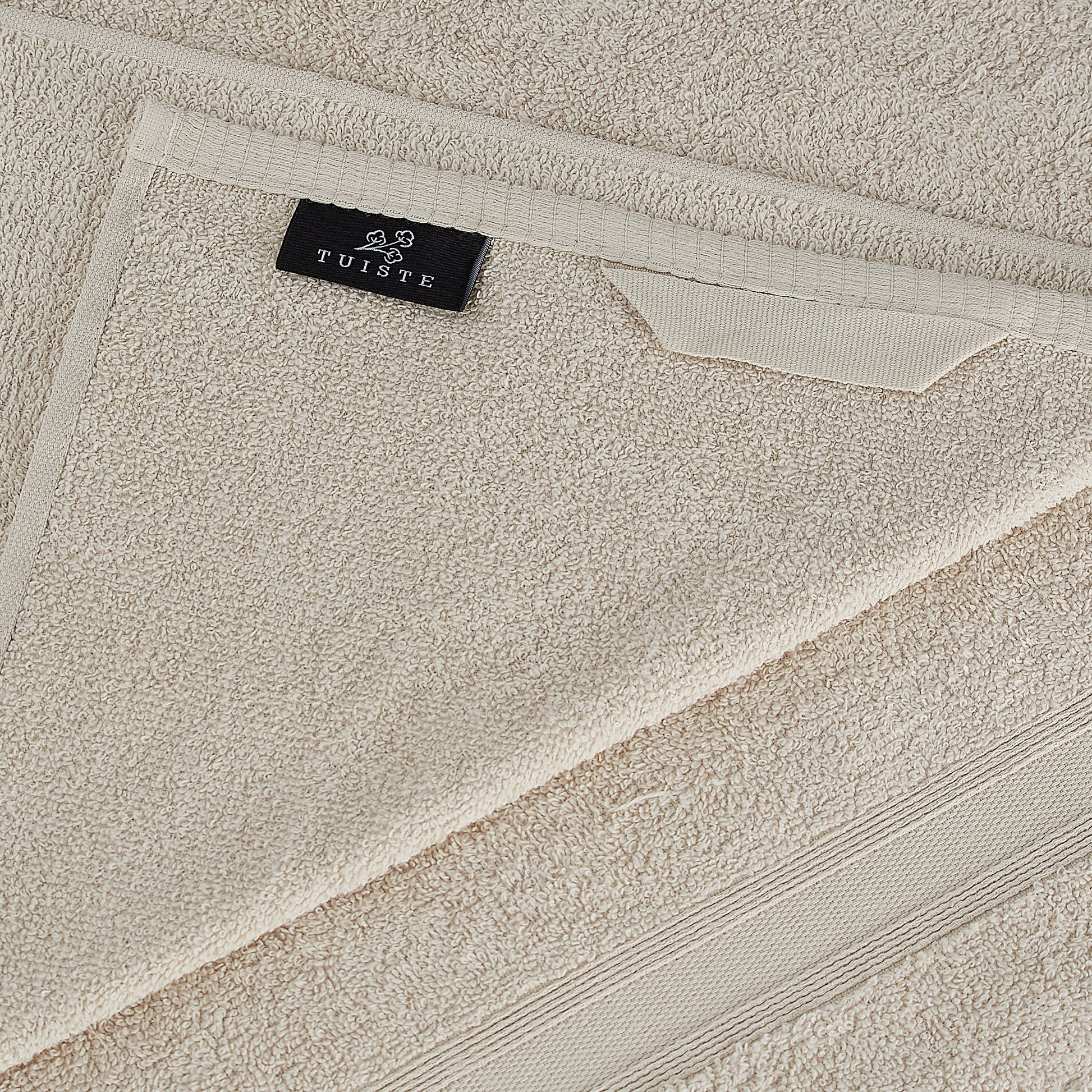 DESIGN AND COLOR: The cream bath towel set has a modern and stylish design that will look great in any bathroom. The color cream is elegant and neutral and will suit any decor. The towels have an edge that protects the towel and gives it a beautiful look.