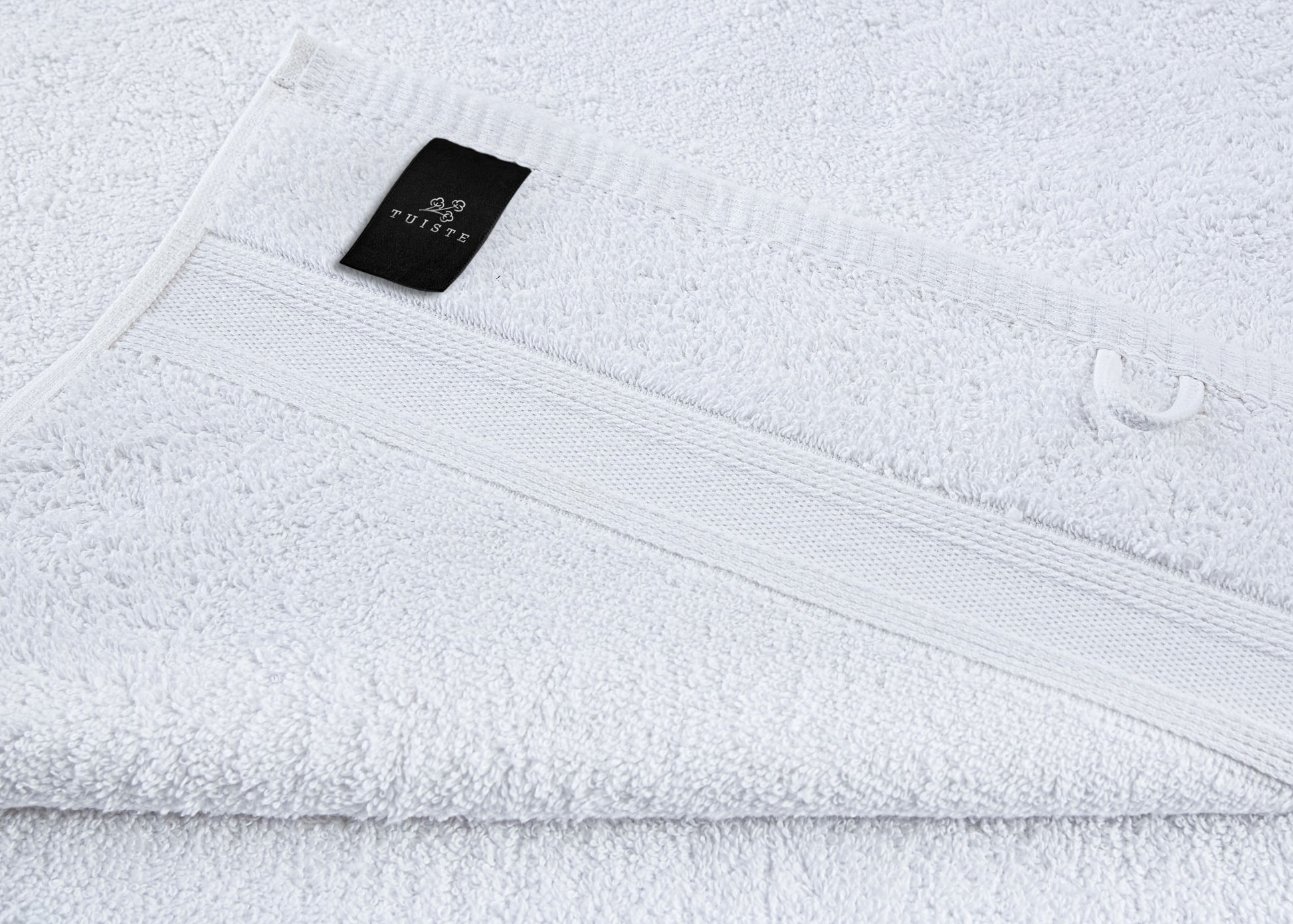 The Tuiste bath towels white blue are made from 100% cotton, which ensures high quality and a particularly soft texture. They are perfect for drying off after showering or bathing.